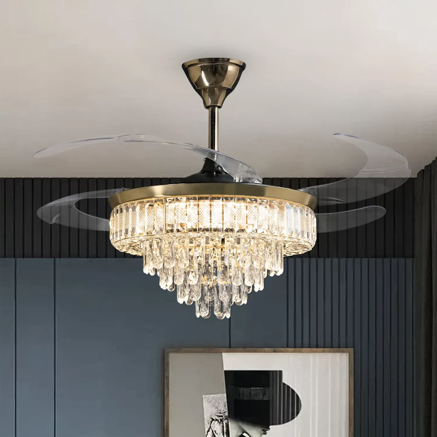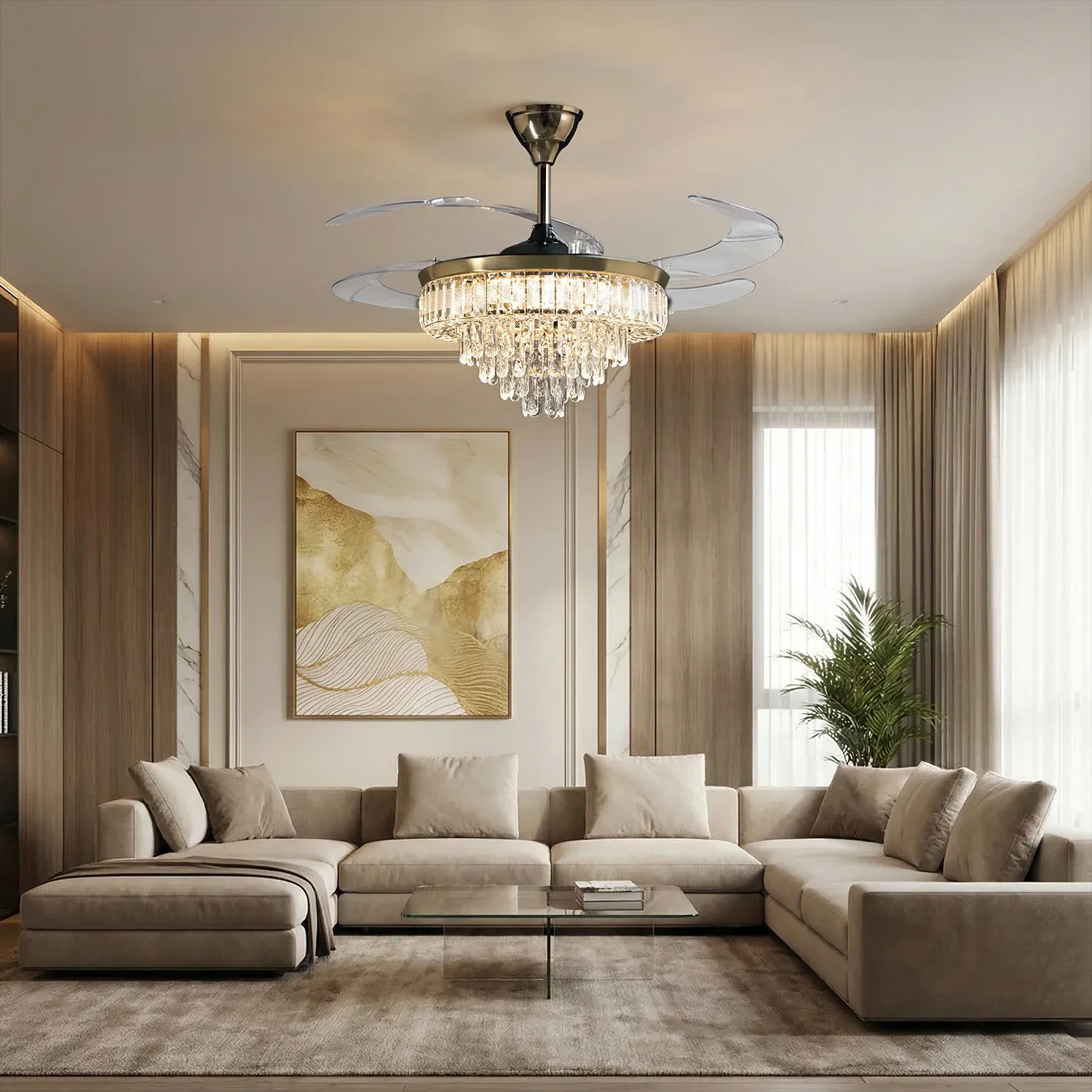 • 42” ABS Retractable Blades – Expands for airflow, retracts for a sleek chandelier appearance.